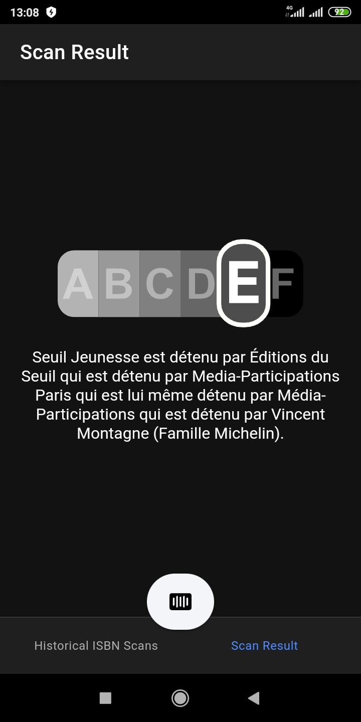 QUISBN? vous permet de scanner ce code-barres pour connaître qui possède la maison d'édition du livre que vous tenez entre les mains, quelle entreprise possède la maison d'édition, qui contrôle l’entreprise, et ainsi de suite jusqu’au bénéficiaire ultime.